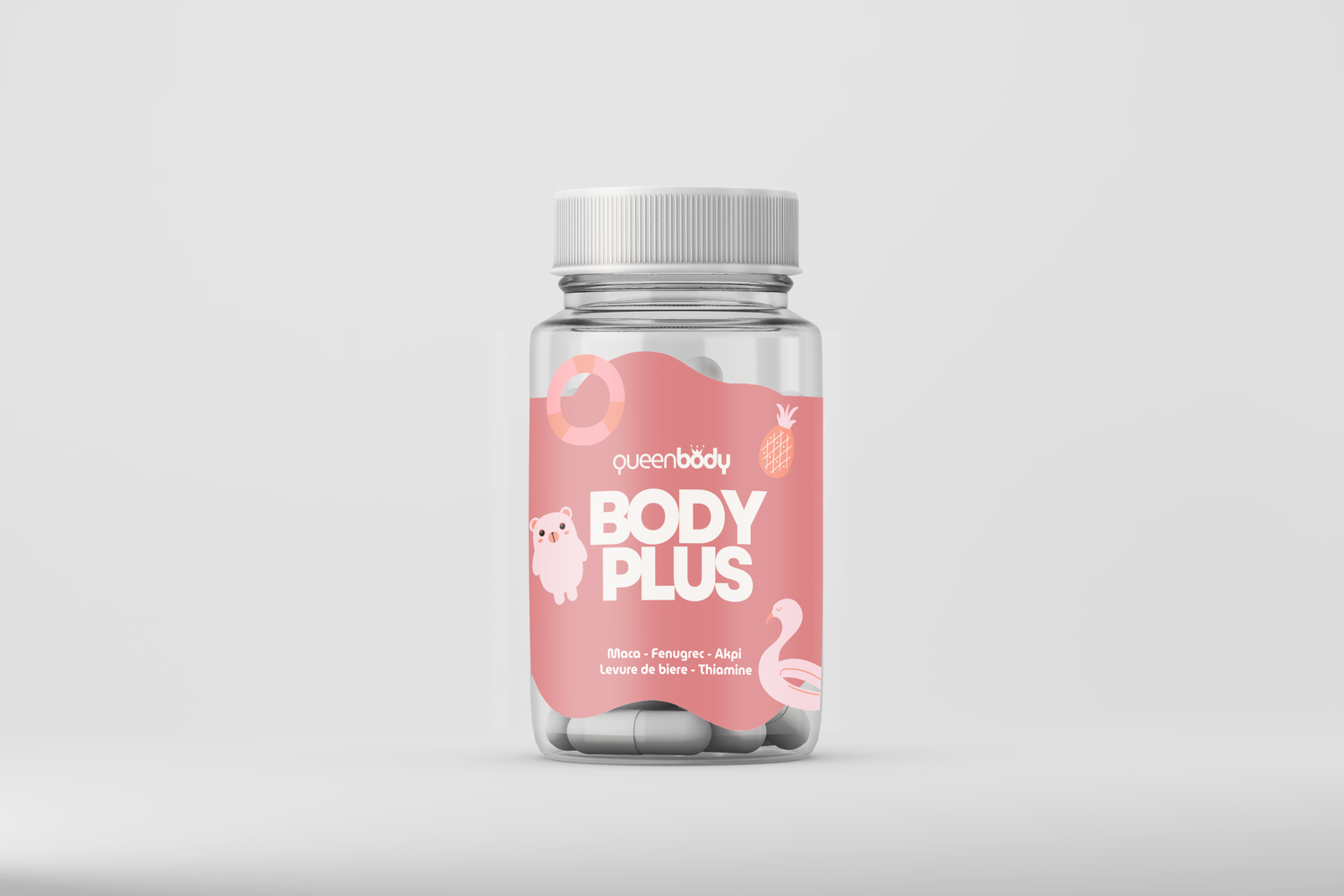 كوين بادي هو مكمل طبيعي لزيادة الوزن وتشكيل الجسم الأنثوي. يحتوي على الماكا، الحلبة، الأكبي، خميرة البيرة والثيامين، ليساعد على فتح الشهية، توازن الهرمونات، وتوزيع صحي للدهون. مثالي لقوام ممتلئ وجذاب بطريقة آمنة وطبيعية.