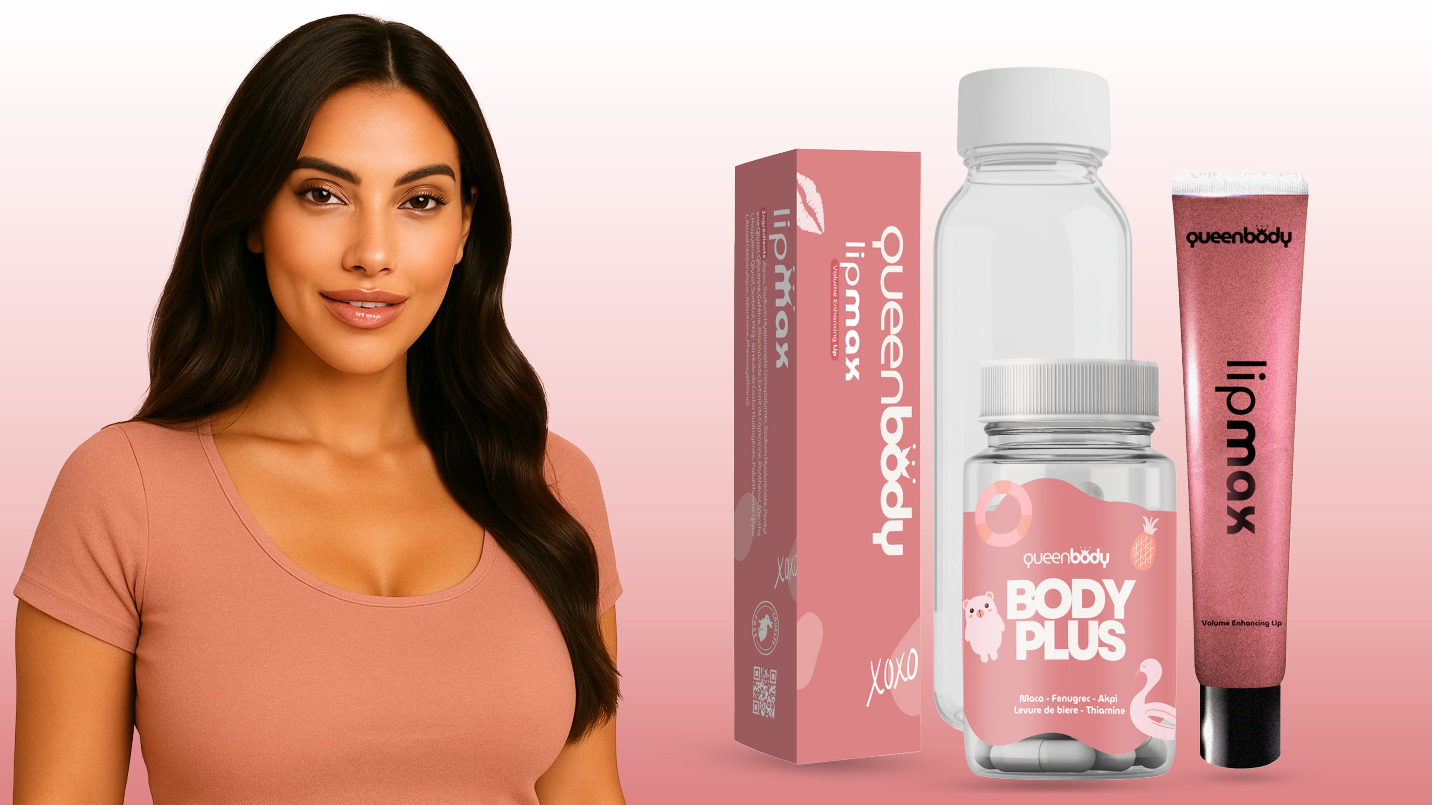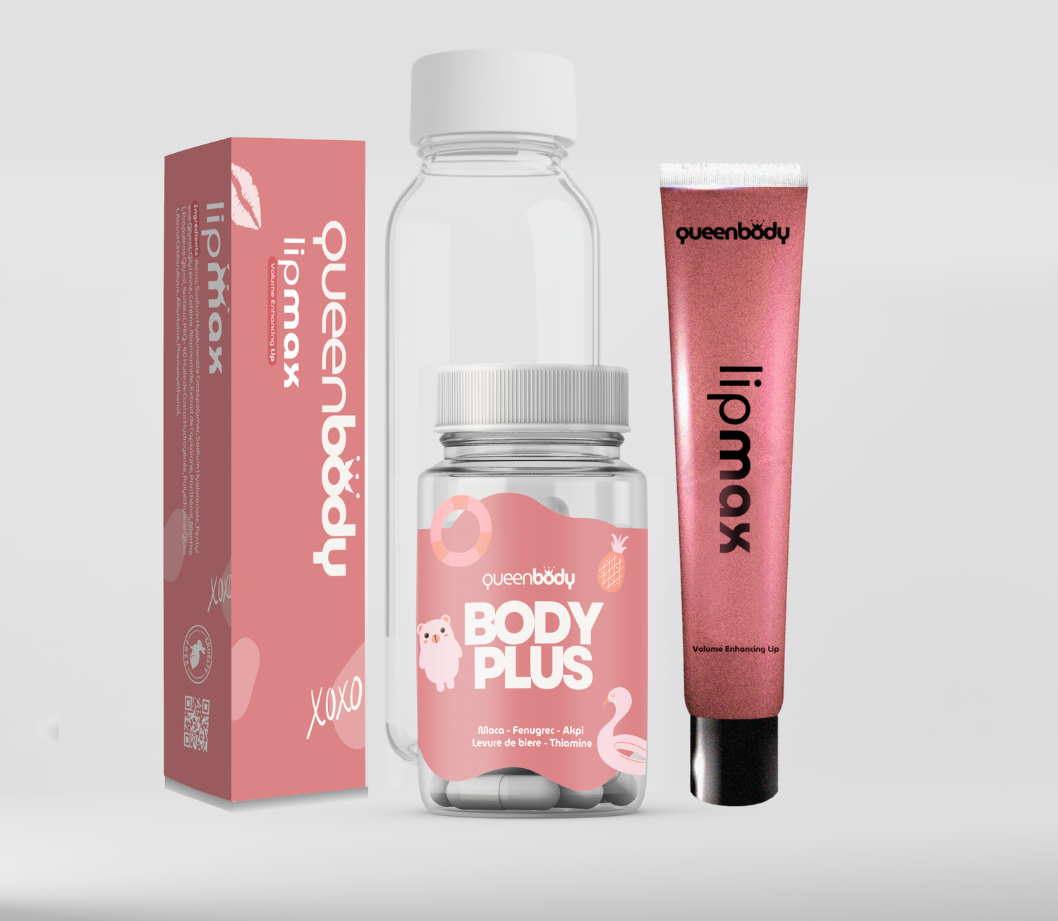 حيث يلتقي الجمال بالثقة. باقتنا الحصرية مصممة لمساعدتك على الوصول إلى الجسم الذي تحلمين به، من خلال مكمل غذائي لزيادة الوزن، قارورة كوين بادي المميزة، وغلوس شفاه مغذي يمنحك شفاه جذابة بشكل طبيعي. اشعري بالجمال وتألقك يبدأ من هنا مع كوين بادي